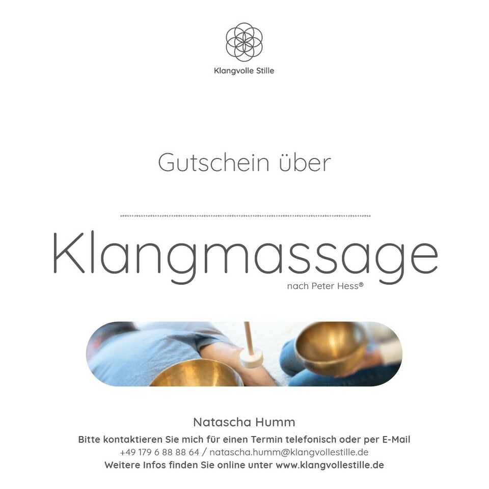 Gerne stelle ich auch Gutscheine für eine Klangmassage oder Klangmeditation aus, mit denen Sie jemanden eine Freude machen können.