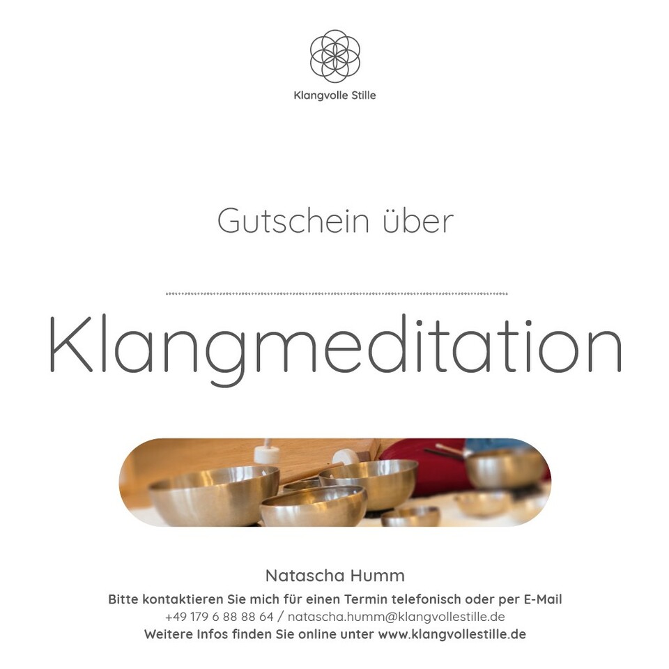 Melden Sie sich gerne unter +49 179 6 88 88 64 oder senden Sie mir eine E-Mail an natascha.humm@klangvollestille.de.